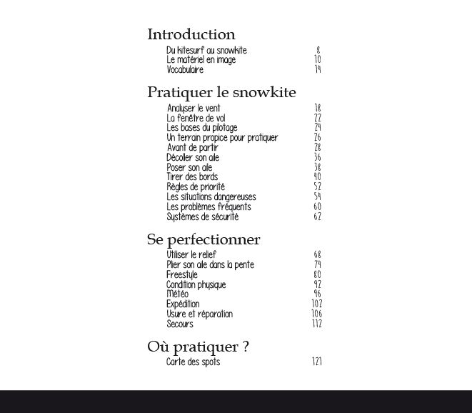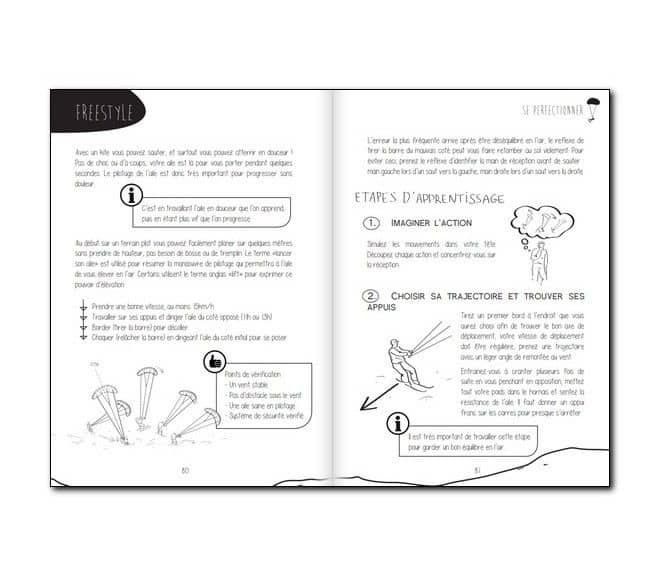 Ponctué d'illustrations et d'astuces, il aborde les notions pour pratiquer en toute sécurité par étape d'apprentissage. Vous pourrez approfondir la théorie du pilotage, vous comprendrez comment remonter efficacement au vent, comment utiliser le relief, comment faire des sauts et des figures freestyle et jusqu'à la préparation d'une expédition.
